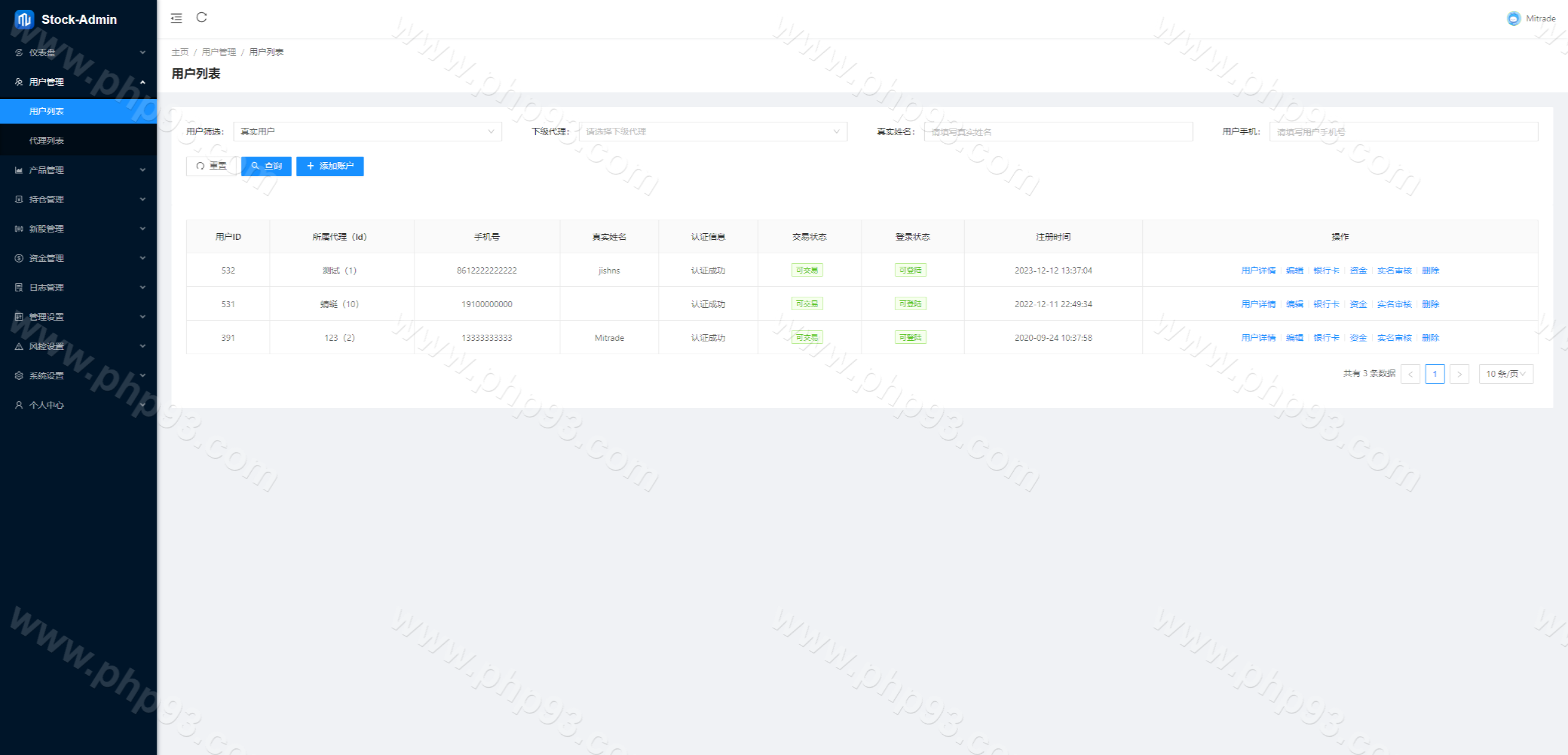 JAVA综合盘全系股票系统,前端(VUE)包含:前台手端、总后台、代理后台,服务端java全开源带源码