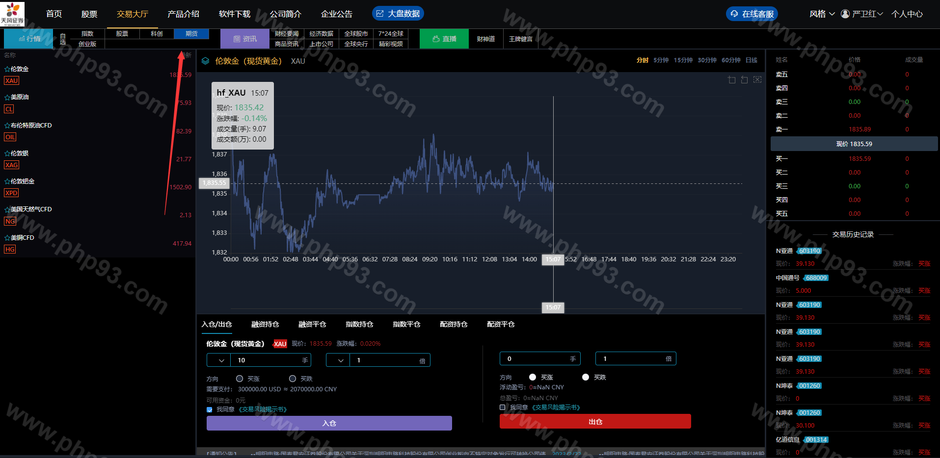 前端新增期货交易,K线数据完整对接,分时走势正常