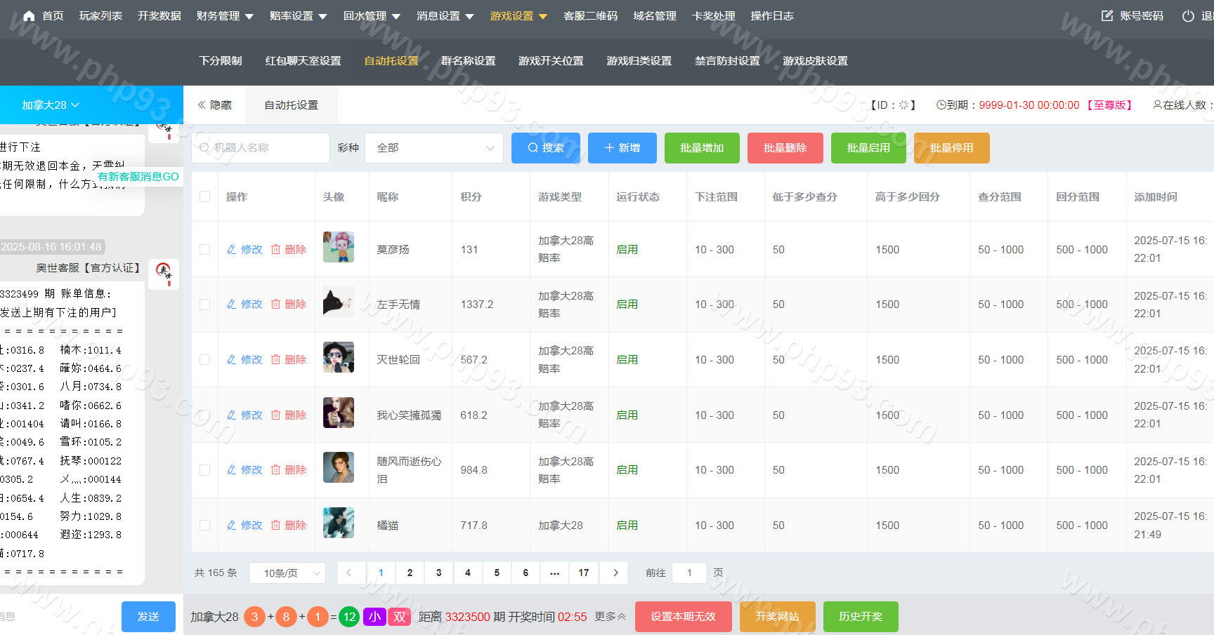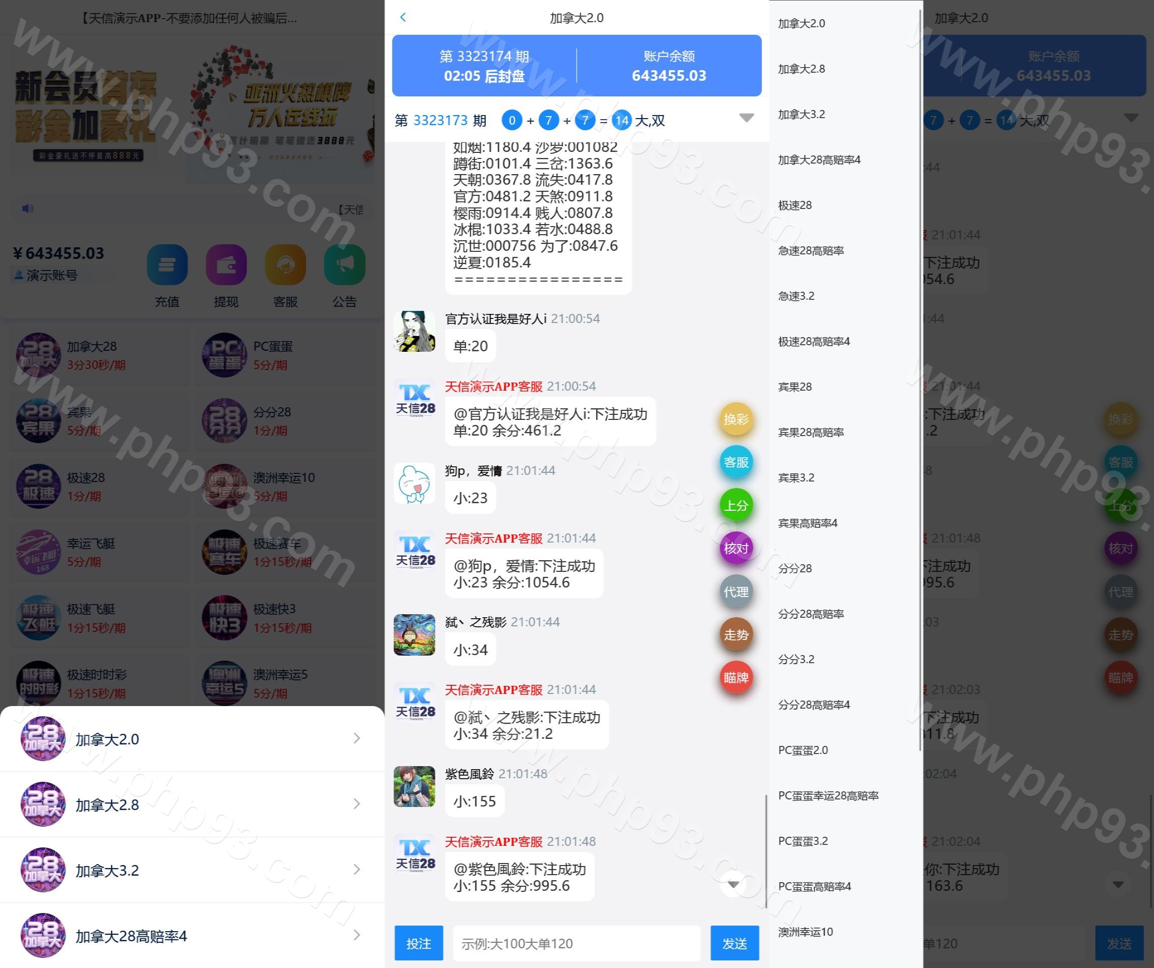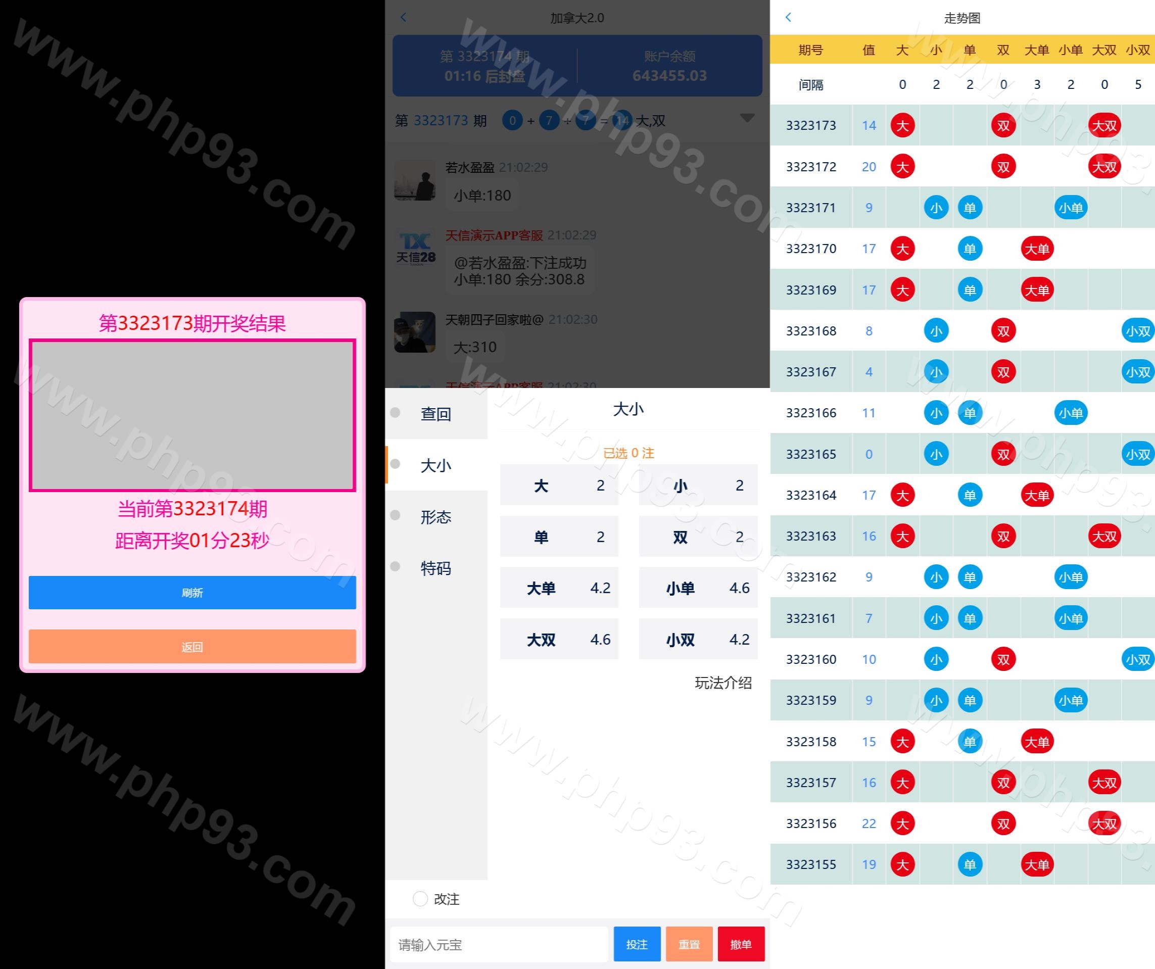 外面源码站的估计都是老版本或者缺资源搭不起来的版本吧,站长发布的这个是正在运营的端。 前端有两套UI,开奖可以在后台手动开,采集已经对接好了。主控被控两个端,可以给别人做授权。 本站所有源码都是站长亲测过才上架的,开通会员可以免费下载!