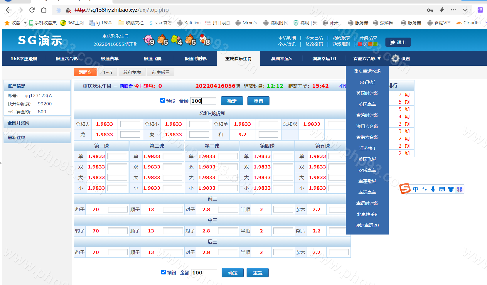 IG彩信用盘源码/现金盘/SG138源码/彩票信用盘源码/视频开奖动画+传统+官方双玩法 +独立商户+独立代理+后台可控+完美运营版