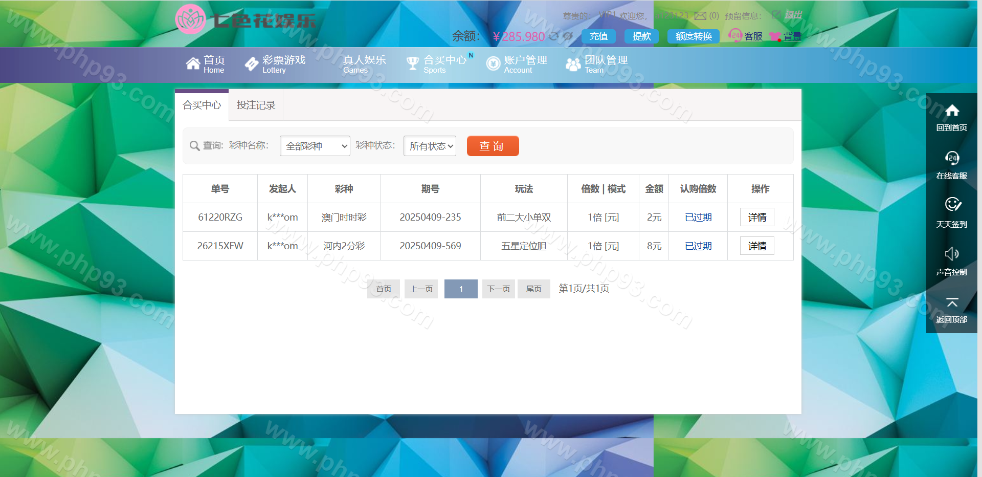 杏彩系统二开七色花彩票源码/跟单合买/真人娱乐/完整运营版